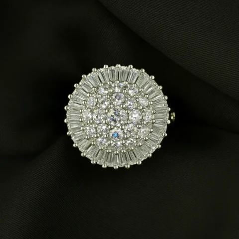 Noor-e-Taj Ring – Royal Silver Halo Sparkle