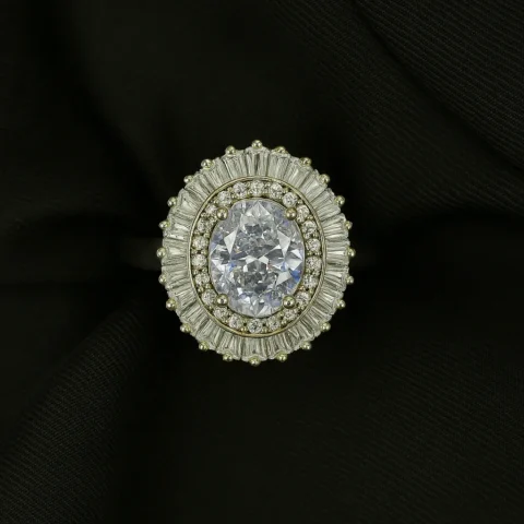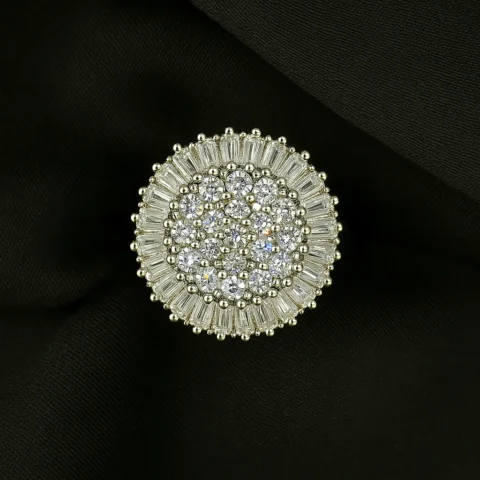 Noor-e-Ice Halo Ring – White Stone in Silver Crown